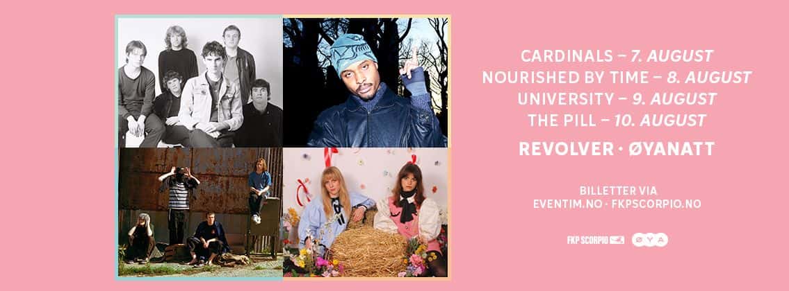 Cardinals (IE), Nourished by Time (US), University (UK) og The Pill (UK) spiller på Revolver etter at parken stenger.